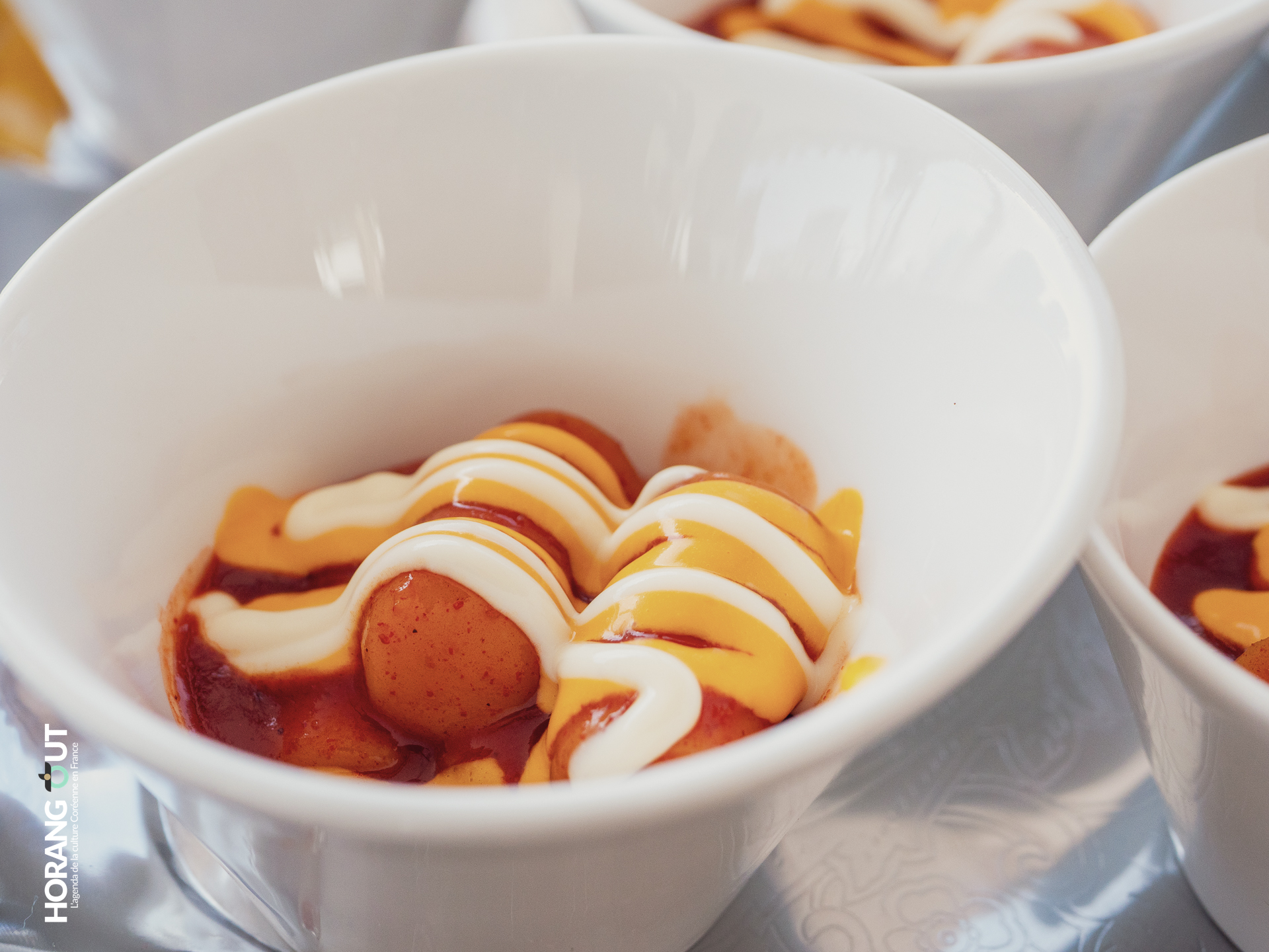 Tteokbokki : Cylindres de riz gluants et moelleux, mijotés dans une sauce rouge et épaisse à base de Gochujang.